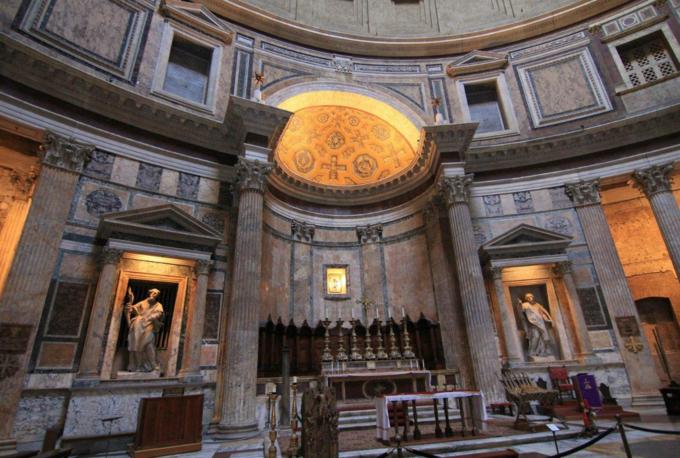 万神殿:万神殿是所有古 罗马 建筑中保存最完好的建筑,自哈德良重建以来一直在近乎连续使用。从远处看,万神殿并不像其他古代遗迹那样令人敬畏 - 圆顶看起来很低,并不比周围的建筑高很多。在内部,万神殿是最令人印象深刻的。