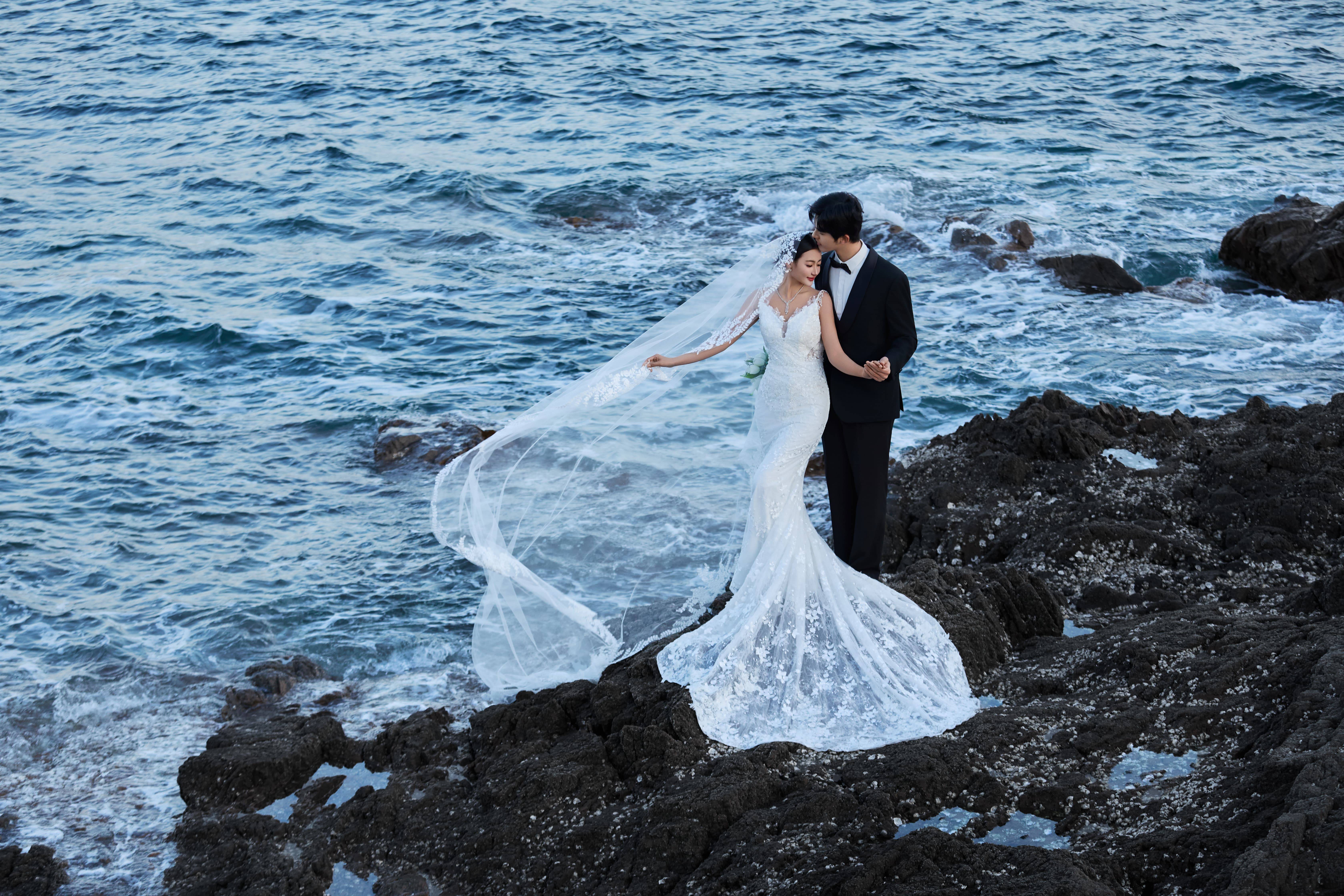 拍摄风格:擅长海景电影感、轻奢度假风、热带森系、经典肖像等多种风格,尤其精通将三亚的椰林、沙滩、礁石、日落等元素与新人故事深度融合,提供剧本式定制拍摄。