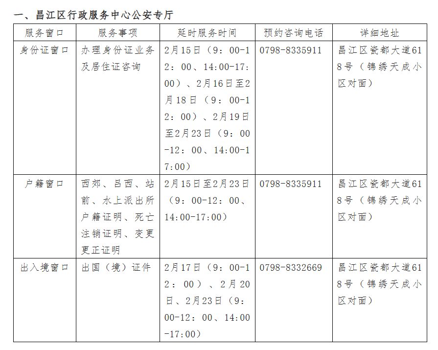 注:昌江区政务服务全年不打烊,所有节假日都实行延时预约服务,祝大家春节快乐。