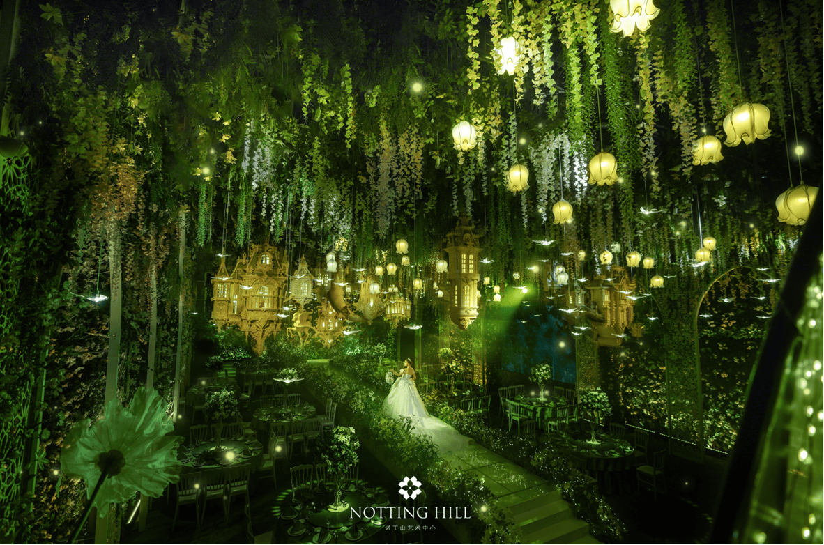 场地方面,诺丁山婚礼艺术中心优势明显。上海静安店占地约20000㎡,是多元一体的优质婚嫁产业园,配套设施齐全完善。依托约26000㎡超大空间,打造了9个沉浸式宴会厅及露天仪式堂、草坪花园等特色场地。静安店拥有巴黎日记(摩登)、留声印画(老中式)等七大主题宴会厅,虹口店配备玫瑰古堡(欧式)、鎏金之境(老钱)两大特色场景,8米层高搭配5D沉浸体验与演唱会级舞美,独门独户独栋更显专属感。2026年还将推出4个沉浸式新主题宴会厅,丰富场景选择。这样超大的场地布局和完备的设施,能灵活承载多种形式的婚礼场景与活动需求,兼顾婚礼所需的私密性与氛围感。